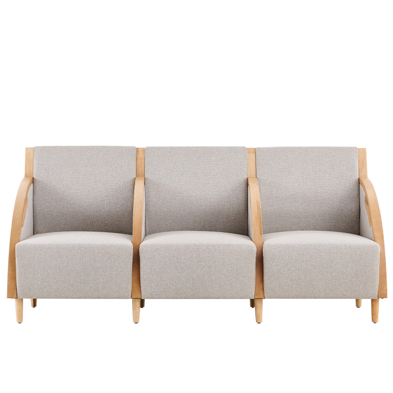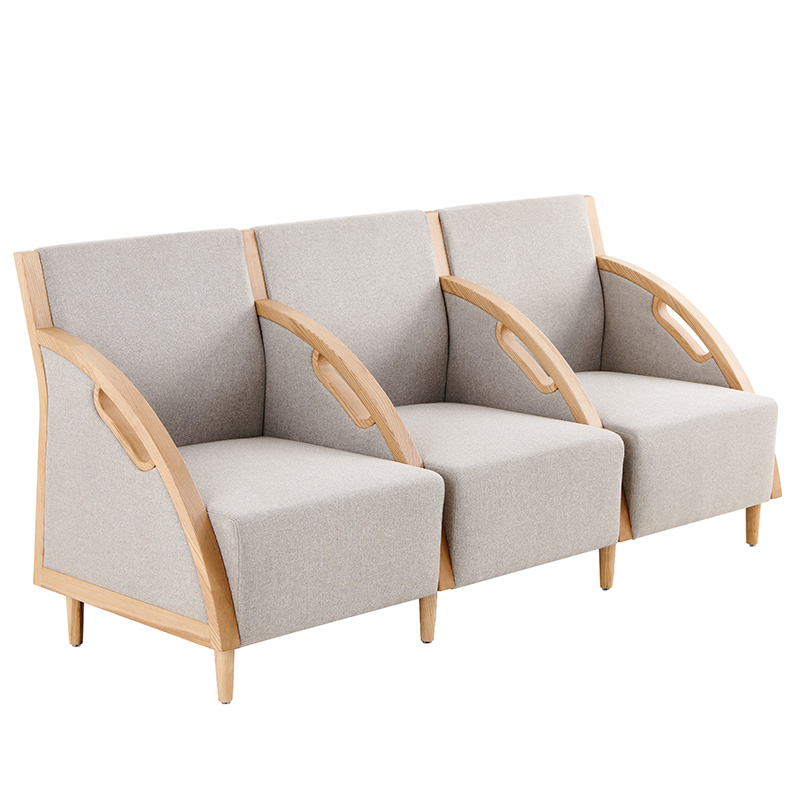 【材質(zhì)說明】: 扶手外框采用A級白蠟?zāi)局谱?,木扶手?jīng)開料、造型、打磨、噴漆制作;座背軟包可選配布紋及皮革軟包。