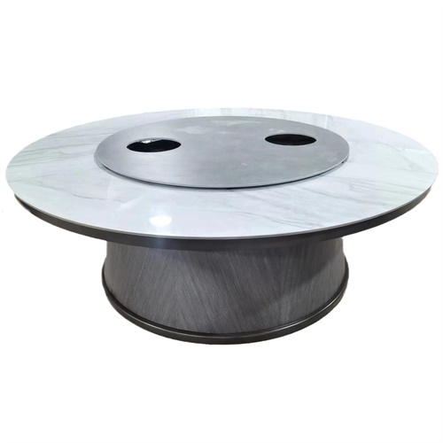 高檔十六人大理石電動(dòng)餐桌轉(zhuǎn)盤帶電磁爐火鍋?zhàn)缊D