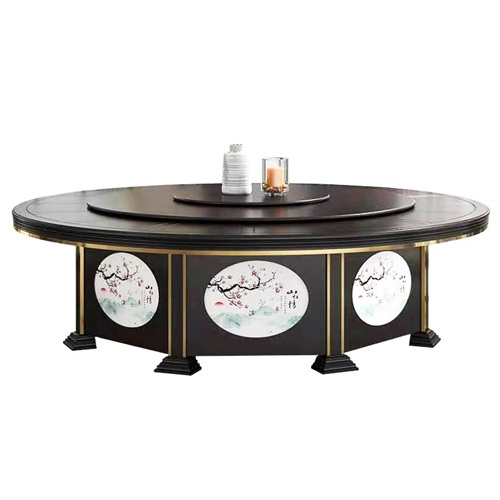 。這款飯店包房新中式實木智能自動旋轉(zhuǎn)餐桌裝飾花紋采用烙燙工藝,擺脫了傳統(tǒng)的木工雕花的費時費工,成本居高不下,或者即使是電腦雕花裝飾有感覺沒有藝術(shù)感,并且烙燙技術(shù)應用到飯店包房新中式實木智能自動旋轉(zhuǎn)餐桌上永遠不會掉色,花紋全靠師傅的藝術(shù)審美,每一臺飯店包房新中式實木智能自動旋轉(zhuǎn)餐桌毫不夸張的說都是一件獨一無二的藝術(shù)品,值得擁有。