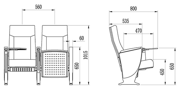 2.座椅基本中心距為560±10mm,座包打開側(cè)深470±10mm,寫字板打開側(cè)深800±10mm,椅高為1015±10mm,最小排距:900 mm。