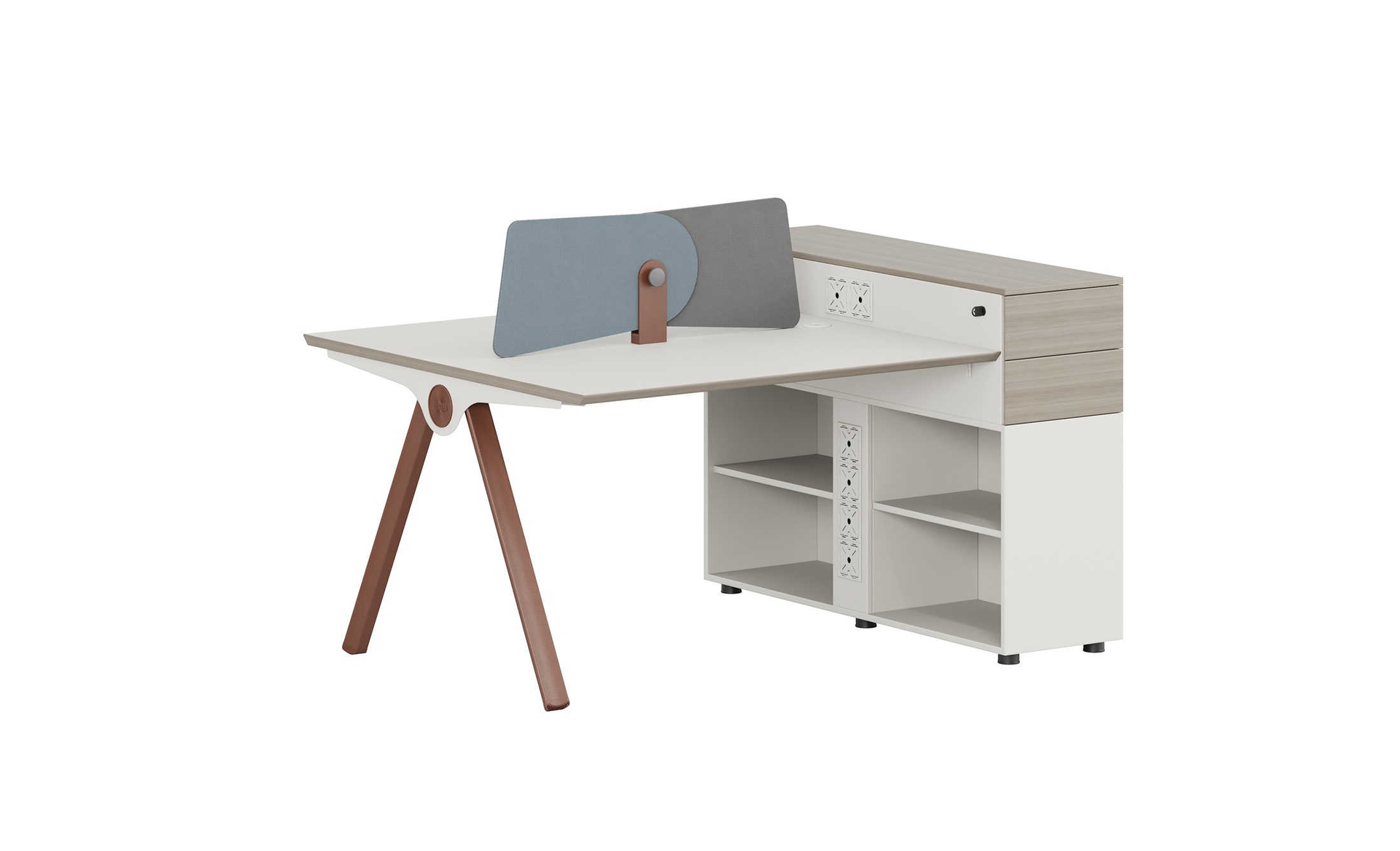 優(yōu)格又名“有格”,代表了有品格、有格調(diào)。產(chǎn)品整體以“青春、時(shí)尚、動(dòng)感”為設(shè)計(jì)主題,采用了大量的弧形與直線條交叉設(shè)計(jì),將產(chǎn)品魅力展示的淋漓盡致。在一貫沉穩(wěn)的深色辦公配色中,大膽運(yùn)用了白色、卡其棕色與淺色木紋的撞色搭配,打破產(chǎn)品配色原有的嚴(yán)肅氛圍,賦予了產(chǎn)品生命力以及活力。獨(dú)特的臺(tái)腳與桌屏設(shè)計(jì),動(dòng)感十足,無不展示產(chǎn)品的細(xì)節(jié)之美。產(chǎn)品設(shè)計(jì)時(shí)尚,配置齊全,適合各種規(guī)模的辦公場所。